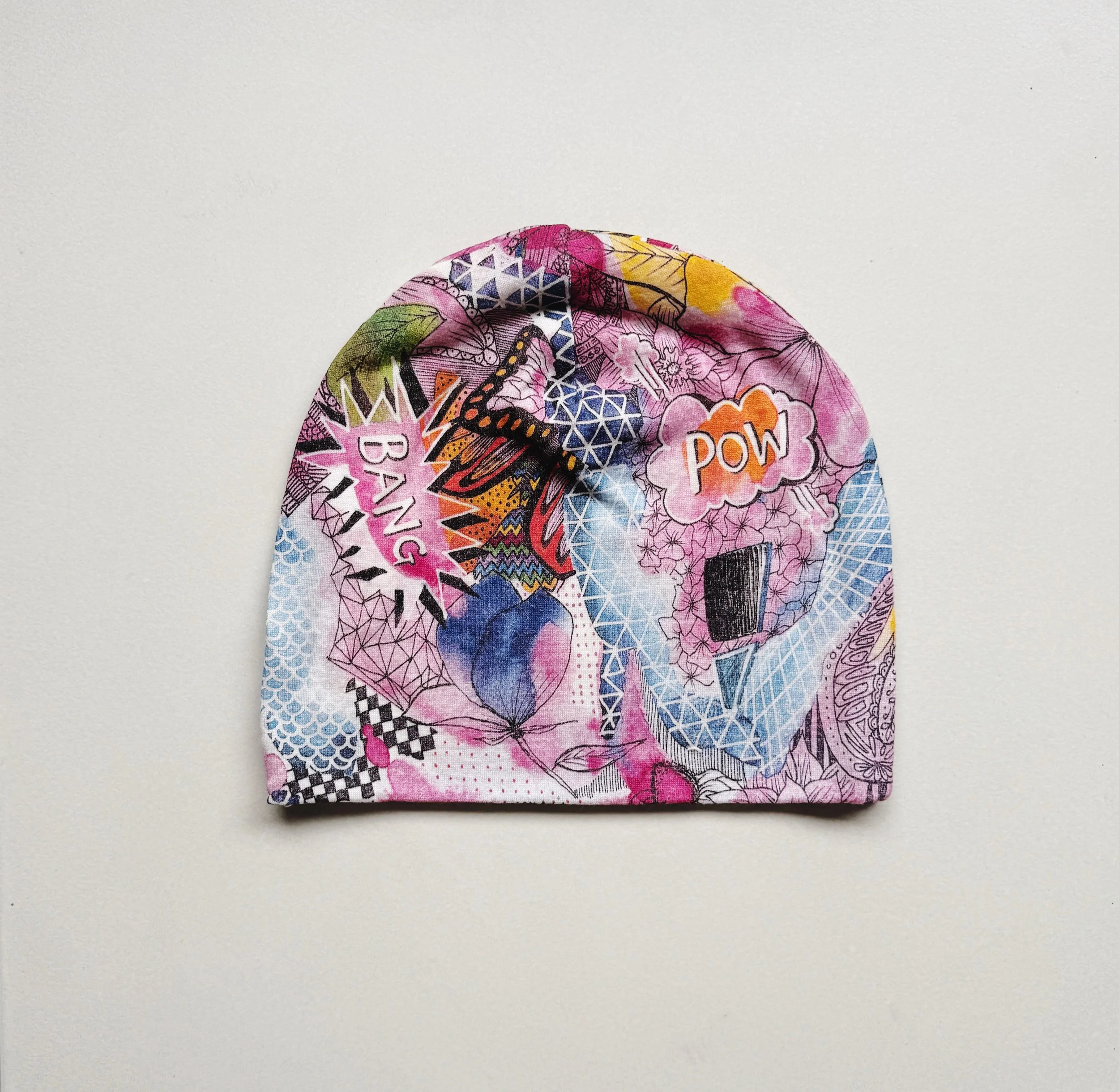 Samples and seconds I’ve had tucked away, and it’s time to give them a chance to shine. These perfectly imperfect Beanies and Scarves were made using my hand-painted designs – limited numbers once they’re gone, they’re gone!